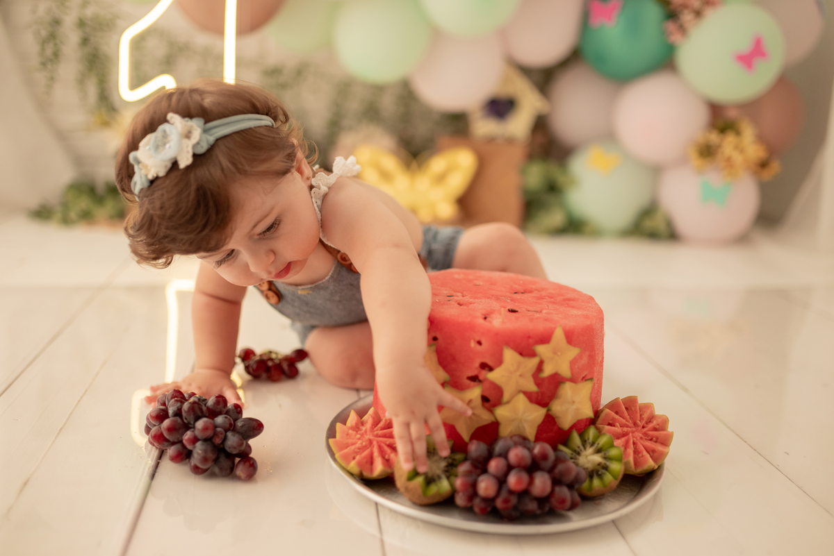 E para os bebês que não consomem açúcar temos a opção do bolo de frutas esses são as mamães que fazem e fica lindo as fotos também!
